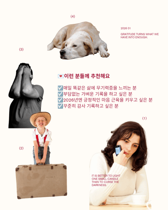 저는 2025년 초, 감사 일기를 처음 쓰기 시작해 지금까지 꾸준히 이어오고 있는데요. 처음엔 마땅히 감사할 만한 것이 생각나지 않아 펜을 들고 오래 고민하기도 했지만, 매일 감사 일기를 쓰다 보니 제 삶에 신기한 변화가 생기더라고요.