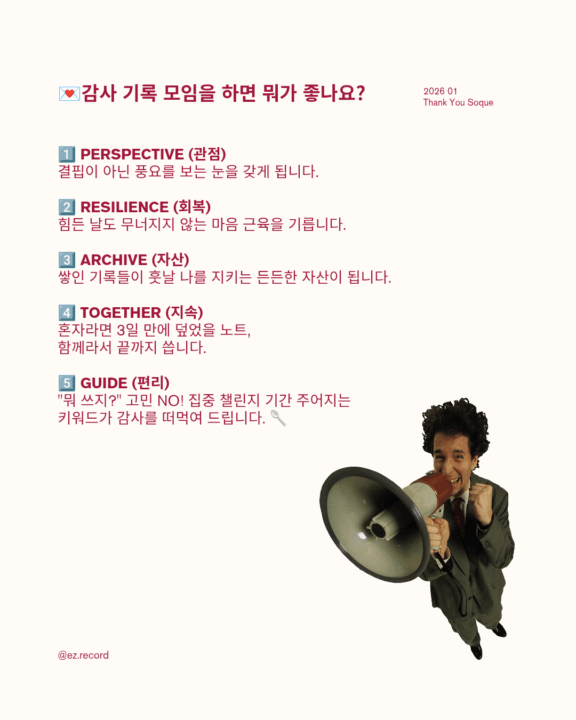 2026년 1월, 감사 기록 모임 <땡큐쏙>을 시작합니다.